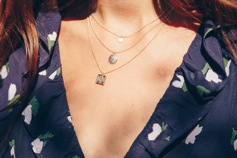 Deep V-neckline: A deep V-neck is one of the most common shapes. With more exposed neck area, opt for a long necklace or layer a short chain with a longer pendant necklace. A long necklace complements the V-neck, accentuating the graceful curve of the neck. Layering a short chain with a longer pendant emphasizes depth around the neck.